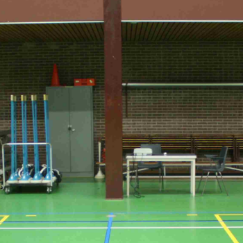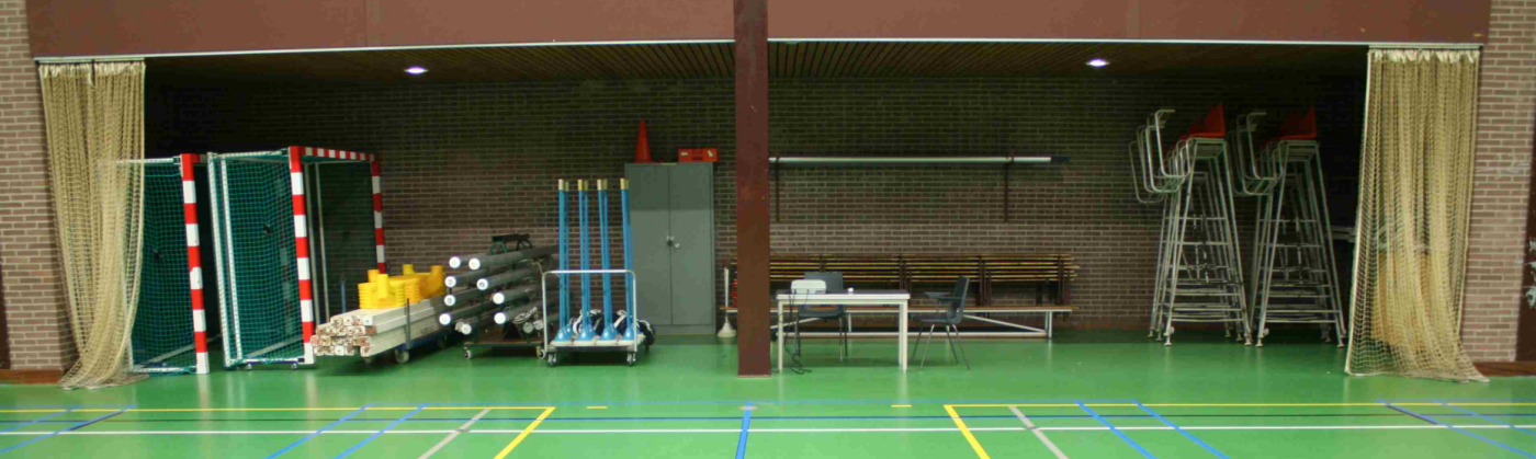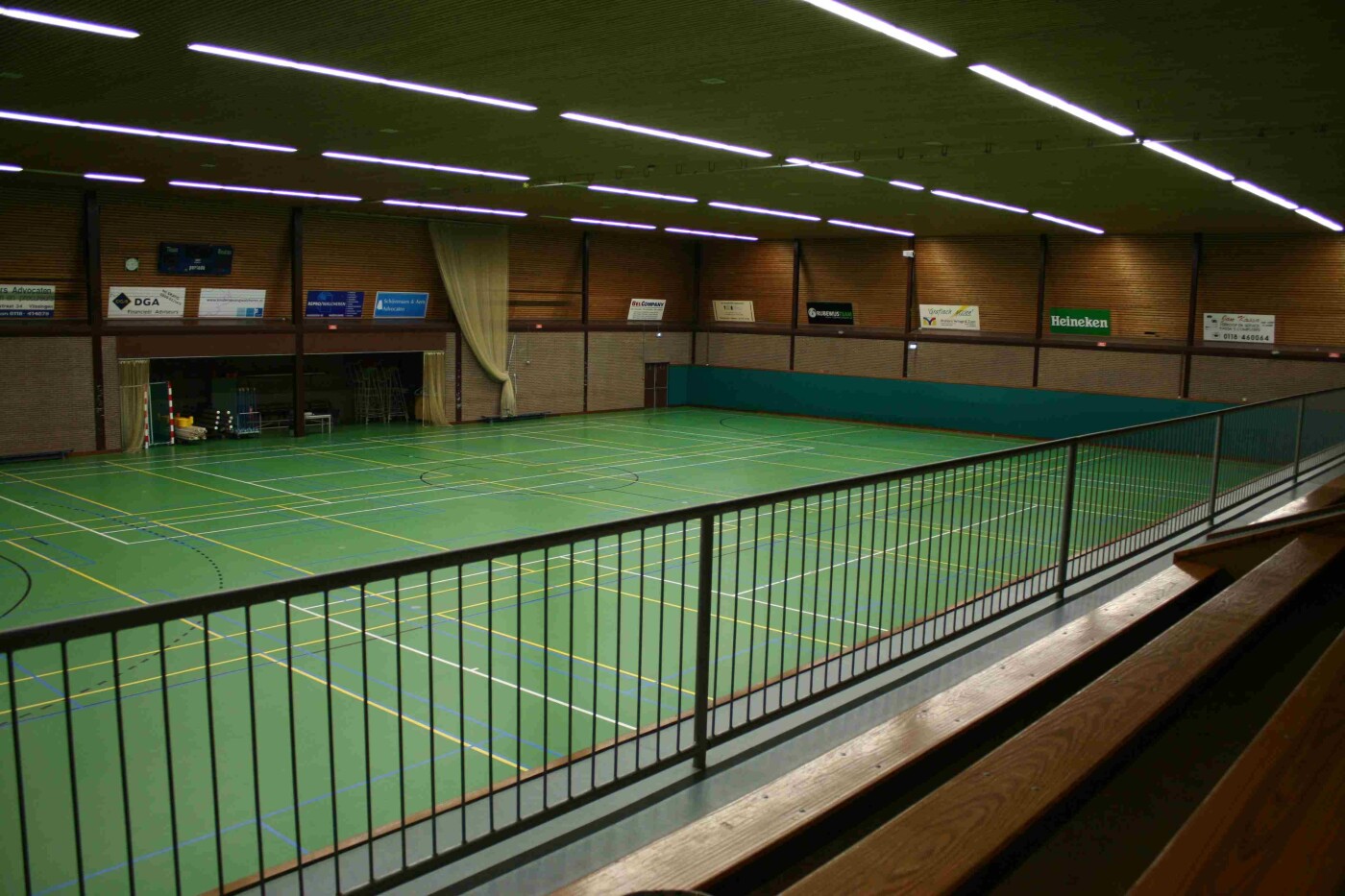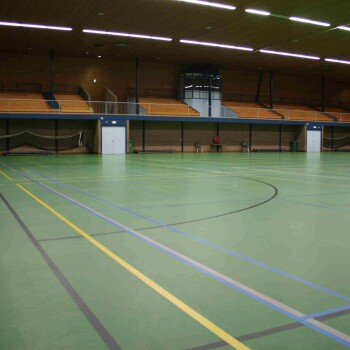 - De sporthal is voorzien van een vaste tribune voor 300 personen en is naast sport ook geschikt voor evenementen