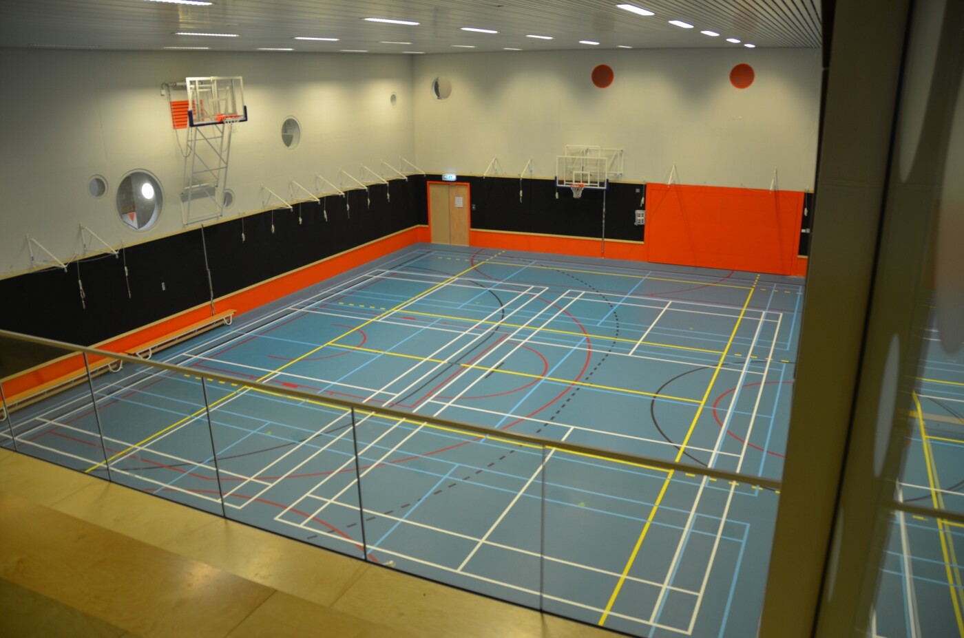 De sportzaal is te scheiden, met een elektrisch bedienbare schuifwand, in twee sportgedeelten. Voor beide zalen is een vaste tribune aanwezig voor ongeveer 50 mensen per zaal. Voor een halve zaal geldt ook een half tarief.