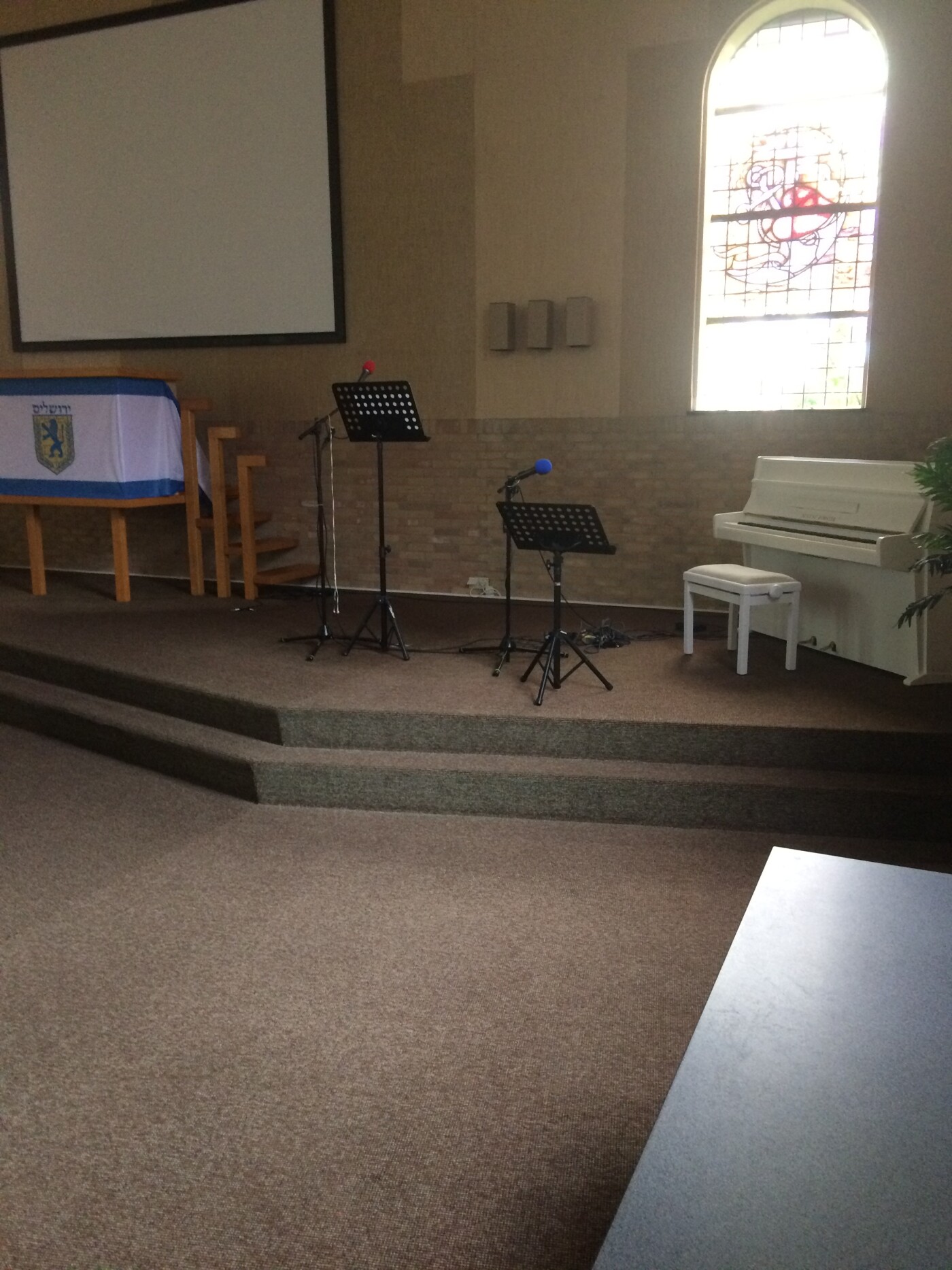 De grote kerkzaal kan ingericht worden voor ruim 200 personen. Er is een beamer aanwezig en een professionele geluidsinstallatie zowel voor sprekers als voor muziekanten.